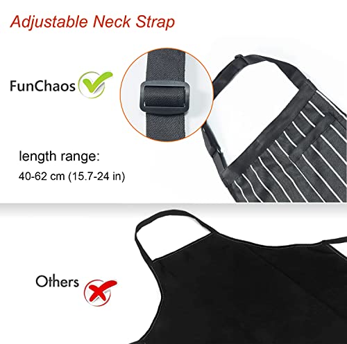FunChaos 2 Grembiule Righe, Grembiule Regolabile con 3 Tasche, Grembiuli da Cucina per Uomo Donna, Grembiuli da Cucina per Chef BBQ Pittura Giardinaggio Cottura Ristorante (Nero/Bianco)