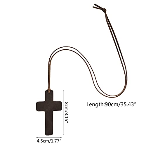 FUNCOCO Collana in legno con croce in legno naturale, con ciondolo a forma di croce in legno fatto a mano, croce in legno, crocifisso con Gesù Cristo e ciondolo in corda nera