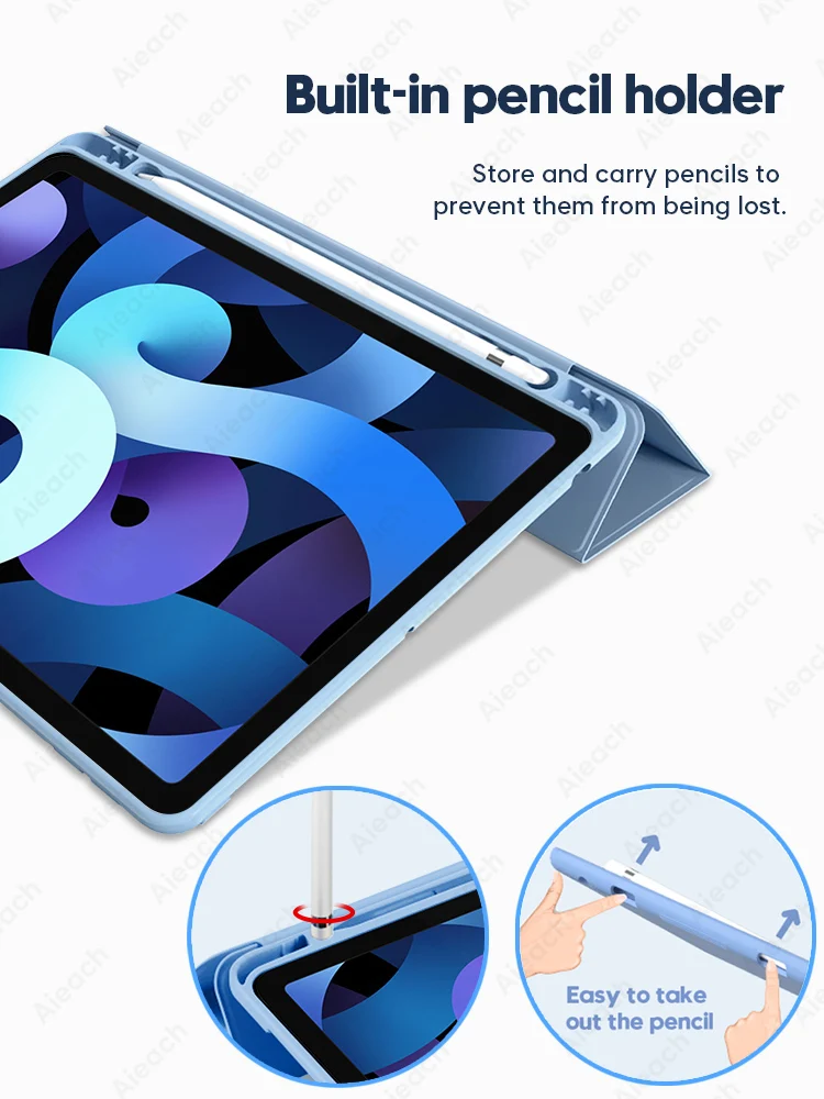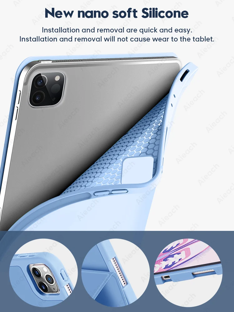 Funda For iPad Air 4 3 2 Mini 5 With Pencil Holder PU Leather Nano Silicone Cover For iPad 10.2 2019 2018 2017 Pro 11 2020 Case
