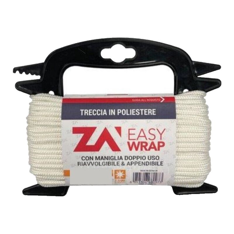 FUNE POLIESTERE 20 M BIANCO Corda in poliestere intrecciato. Fornita con pratica maniglia per riavvolgimento dopo l'uso. Dati: Diametro 8 mm/20m - Cartco 930Kg Diametro 6 mm/20m - Cartco 490Kg Diametro 5 mm/20m - Cartco 300Kg Diametro 4 mm/20m - Cartco 240Kg