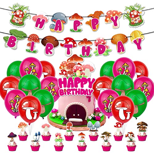 Funghi Party Decorazione Funghi Compleanno Forniture Include Funghi Banner, Torta Topper, Cupcake Toppers, Palloncini