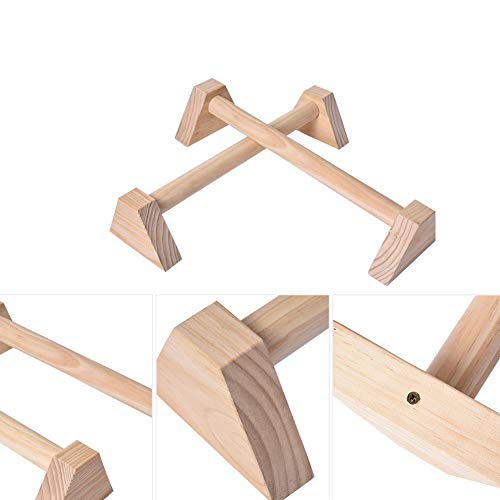 Funihut - Set di 2 parallele in legno, barre per push up con supporto in legno, per fitness, mini parallele per ginnastica callistenica, marrone, 50cm