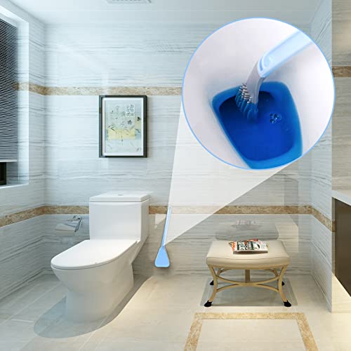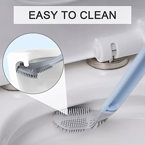 FuninCrea Spazzola per Toilette da Golf Nuovo Manico Lungo Scopino e Supporto per Toilette in Silicone Impostato a 360° Senza Angoli Morti Flessibile Spazzola per Pulizia della Toilette (Blu)