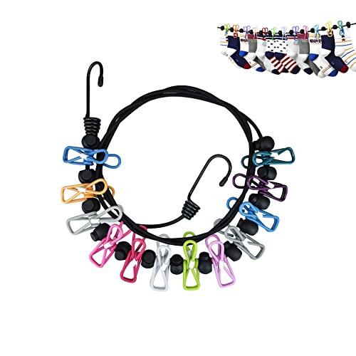 FuninCrea Stendibiancheria, Stendibiancheria Portatile Elastica con 12 Clip Colorate e 13 Bottoni Stendibiancheria Multifunzionale Antiscivolo per Balcone Esterno Campeggio Stendibiancheria, Calzini
