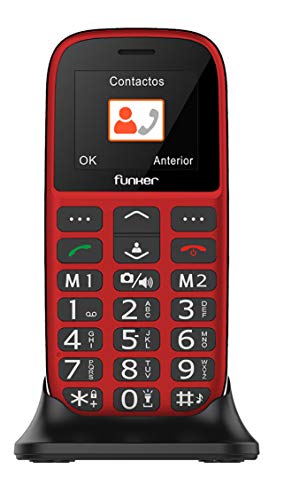 Funker Telefono cellulare C65 Rosso Easy Plus - per anziani con pulsante SOS e base caricabatterie. Fotocamera fotografica e agenda con fotocontatti. ...(rosso)