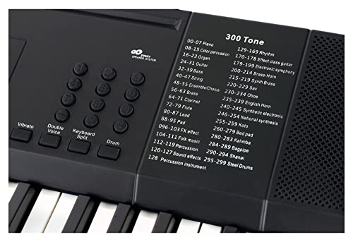 300 Voci, 300 stili, 40 demo, sustain, Vibrato, Double Voice, Transpose, Tastatur-Split, Intro/Ending, Percussioni