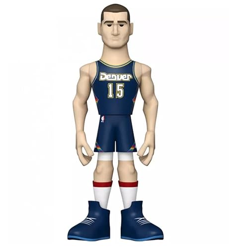 Questa figura Vinyl Gold della leggenda dell'NBA di Nikola Jokic è confezionata in una scatola da esposizione e misura circa 12,7 cm (5")