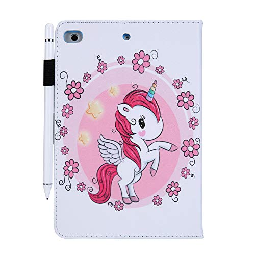 Funluna Custodia per Apple iPad Mini/iPad Mini 2 3 4 7,9" Tablet, PU Pelle Smart Case con Funzione di Supporto e Svegliati/Sonno con Silicone Morbido TPU + Card Slots Cover, Unicorno
