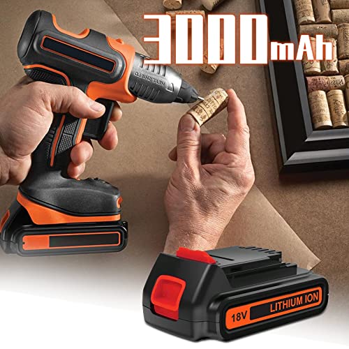 【Specifiche della batteria】Tipo di batteria: Ioni di Litio|Tensione: 18V|Capacità: 3.0Ah / 3000mAh|Sostituzione per Black+Decker Batteria 18V.