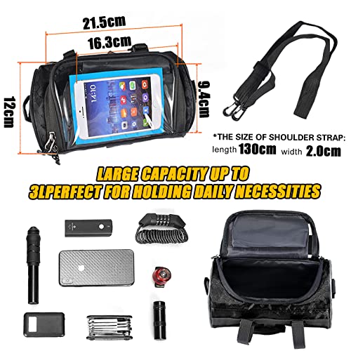 Funmo Borsa Manubrio Bici Impermeabile Borsa da Manubrio Bici Bag con Finestra in TPU Borse MTB da Manubrio per Il Ciclismo di Breve Distanza Pendolarismo per Telaio della Bicicletta Borsa
