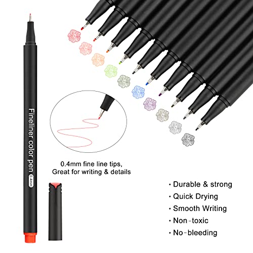 36 colori assortiti: il set di penne fineliner viene fornito con 36 colori vivaci e presenta punte fini da 0,4 mm, penne multiuso ampiamente applicate per colorare piccoli motivi intricati, disegni a inchiostro fine, delineare note importanti, scrivere diari proiettili, disegnare.
