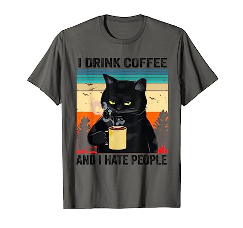 Funny Black Cat I Drink Coffee and I Hate People Maglietta