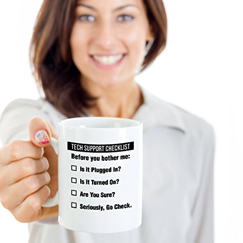GRAB A TECH SUPPORT CHECKLIST CUP for your next birthday present for him or her, as a last-minute Christmas stocking stuffer, holiday office party gift, white elephant gag gift exchange, Father's or Mother's Day memento, graduation or appreciation day hallmark moment, or any time of year or season to celebrate someone special.