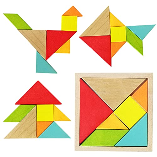 FunnyGoo Sette Pezzi di Legno Tangram Puzzle Giocattoli Giocattoli educativi di apprendimento precoce