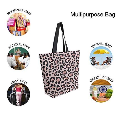 Funnyy, borsa da spiaggia con stampa leopardata floreale, borsa da donna, casual, borsa da spiaggia, grande, riutilizzabile, in cotone, multiuso, per insegnanti, palestra, lavoro
