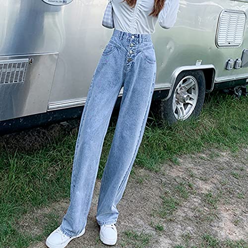 FUNPLUS Jeans da Donna Pantaloni Dritti Larghi a Vita Alta con Fondo in Denim a Vita Alta Aderenti alla Pelle