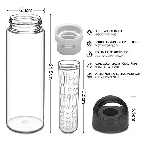 FunRun 700ml Frutta Acqua Bottiglia Infusioni Borraccia Infusore (Plastica Tritan Senza BPA) Perfetta per depurare l'organismo, per gli sport e per le attività all'aperto