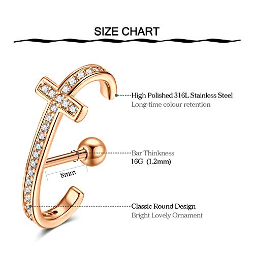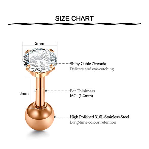 Funseedrr 5pcs Piercing Helix Trago Borchie Acciaio Chirurgico 16G 1,2mm Orecchini Barre Cristallo Orecchio Cartilagine Lobo Piercing