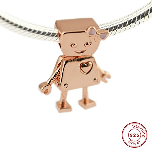 FUNSHOPP, charm del robot Bella Bot, in oro rosa e smalto, adatto per braccialetti Pandora originali, gioiello alla moda e ideale per il fai da te
