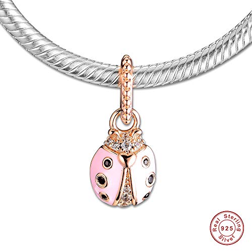 FUNSHOPP - Collana con ciondolo a forma di coccinella portafortuna, in argento 925. Adatto per il fai da te e per i braccialetti originali Pandora