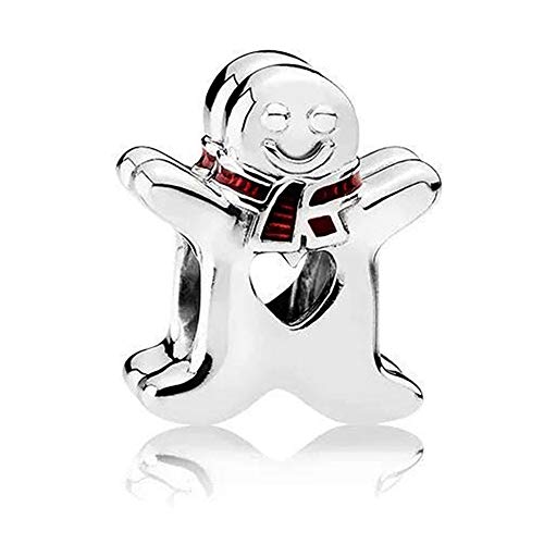 Funshoppp, charm natalizio a forma di uomo di pan di zenzero, adatto per braccialetti originali Pandora in argento 925
