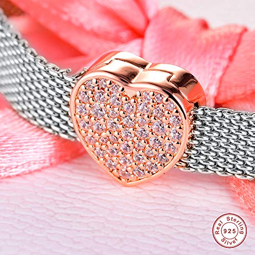 Funshoppp, ciondolo a forma di cuore, in argento 925, per braccialetti Pandora originali, gioielli alla moda (oro rosa)