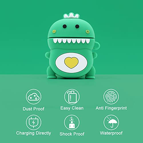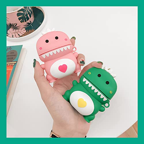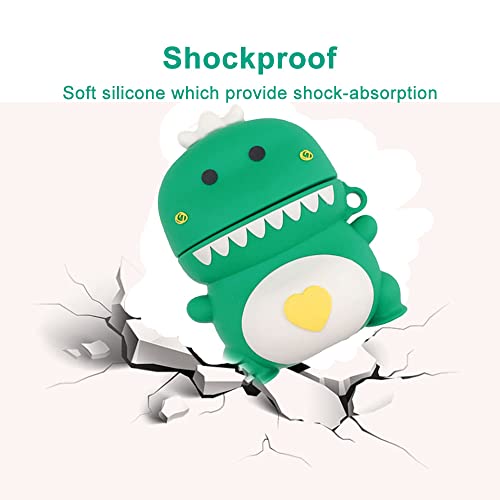 Funwaretech Cover AirPods 2 & 1 Generazione Custodia AirPods 2 1 Divertenti Silicone,3D Cartoni Animati AirPod 2 & 1 con Moschettone Portachiavi [Antiurto & Supporto Ricarica Wireless]-Dinosaur