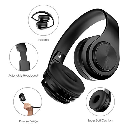 Funwaretech Cuffie Wireless Bluetooth Over-Ear, Auricolare Bluetooth 5.0 con Stereo Hi-Fi Ricaricabile, Pieghevoli Senza Fili Cuffiette con Microfono Incorporato per iPhone/Android/PC(Nero)
