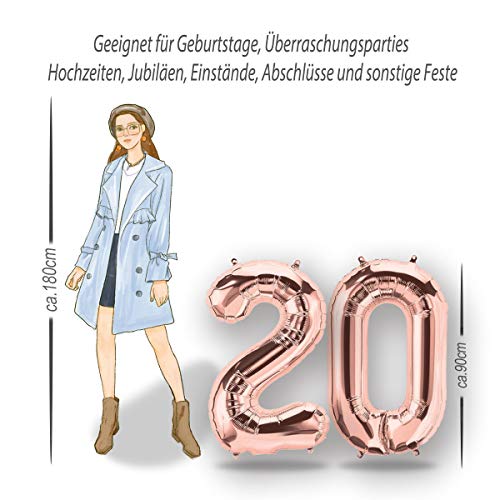 FUNXGO Palloncino Numero 20 oro rosa - Palloncini Compleanno 20 Anni - Palloncino 20 Anni Compleanno - Decorazioni Compleanno - Vola con l'Elio - Feste Decorazione di Compleanno Palloncino oro rosa 20