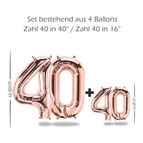 FUNXGO Palloncino Numero 40 oro rosa - Palloncini Compleanno 40 Anni - Palloncino 40 Anni Compleanno - Decorazioni Compleanno - Vola con l'Elio - Feste Decorazione di Compleanno Palloncino oro rosa 40