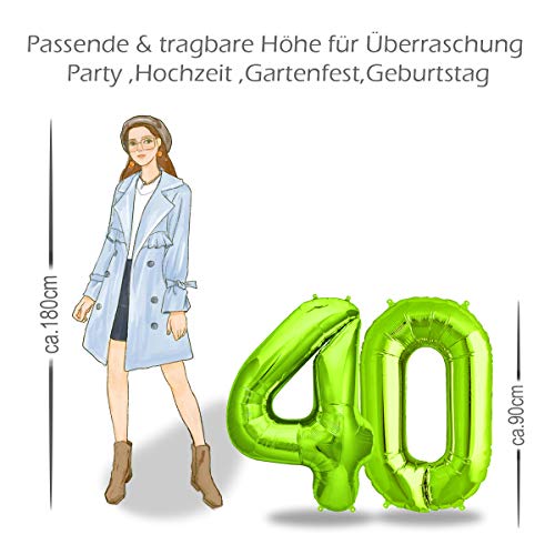 FUNXGO Palloncino Numero 40 verde - Palloncini Compleanno 40 Anni - Palloncino 40 Anni Compleanno - Decorazioni Compleanno - Vola con l'Elio - Feste Decorazione di Compleanno Palloncino 40 verde