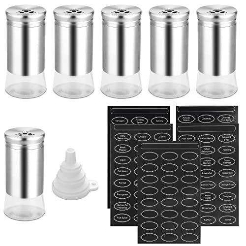 FUNYKICH 6 Pezzi Barattoli Spezie,Barattoli Portaspezie in Vetro da 120 ml, Contenitori Spezie per Cucina con 120 Etichette e Imbuto in Silicone Pieghevole