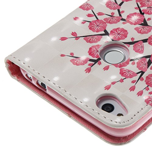Funyye Custodia Per Huawei Honor 8 2017 Cover Pelle Portafoglio Libro Copertura con [Gratis Pellicola Protettiva] Supporto Stand Porta Carte Chiusura Magnetica protettivo Caso Per Huawei Honor 8 2017 Flip Wallet Case with Free Screen Protector- Ragazza di fiore di prugna
