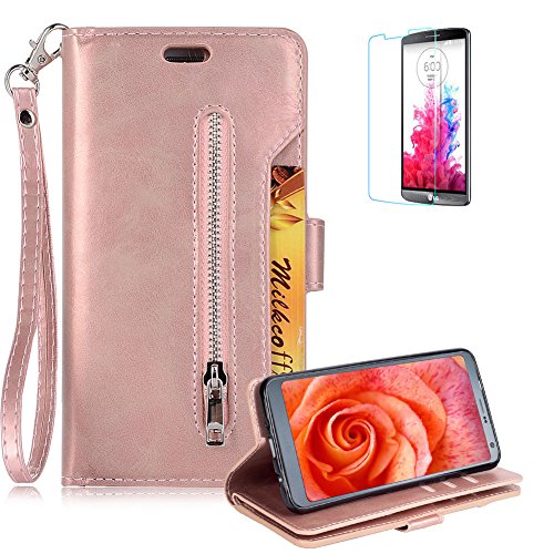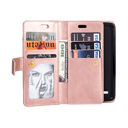 Funyye Custodia in Pelle per LG K10 2017 Telefono Cover e Multifunzione, Chiusura Magnetica cerniera Portafoglio Doppia faccia Tasche per Soldi e Disegno Portafoglio Copertura Carte Pratico affari Pelle Per LG K10 2017- Oro rosa