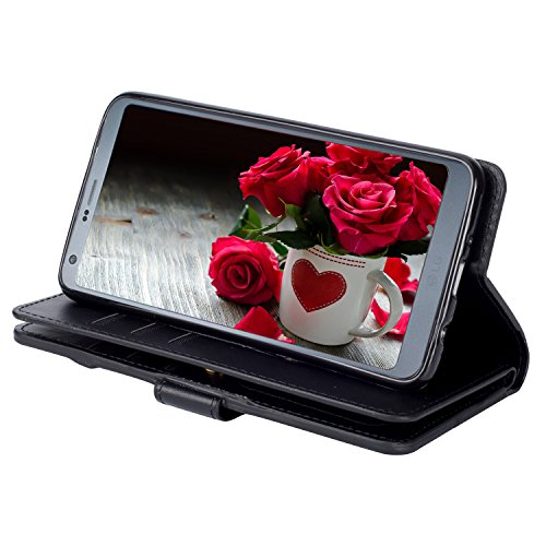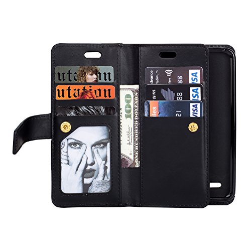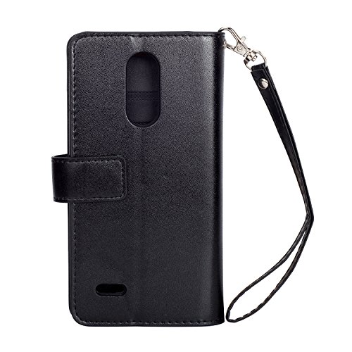 Funyye Custodia in Pelle per LG K10 2017 Telefono Cover e Multifunzione, Chiusura Magnetica cerniera Portafoglio Doppia faccia Tasche per Soldi e Disegno Portafoglio Copertura Carte Pratico affari Pelle Per LG K10 2017- Nero
