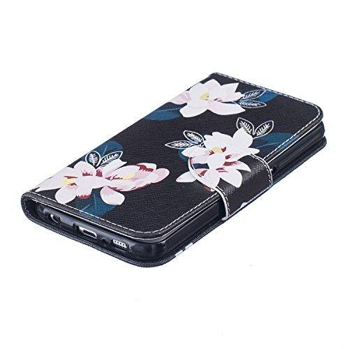 Funyye Custodia Per Samsung Galaxy S6 / Galaxy S6 Duos in Pelle Cover e Pellicola Protettiva,Bianca Camelie in Nero Disegno Portafoglio Copertura [Tasche per Soldi e Carte] [Chiusura Magnetica] Interna Morbida Silicone Cover Per Samsung Galaxy S6 / Galaxy S6 Duos Flip Protection Case with Screen Protector