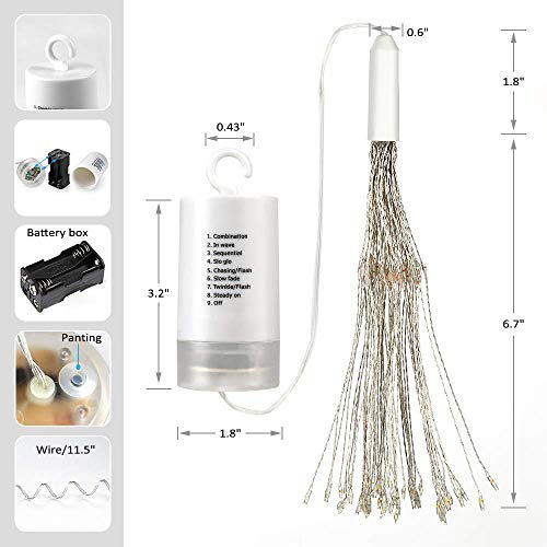Facile da installare: 4 batterie 5AA (non incluse), impostate sulla posizione desiderata e regolate le luci sulla perfetta forma pirotecnica.