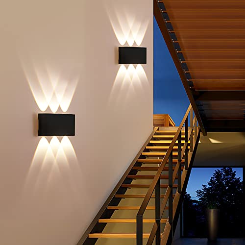 ✅ DESIGN LAMPADA DA PARETE: Applique da esterno è realizzata in alluminio di alta qualità e ha un design ad arco unico.La nuova generazione di perline LED sono a risparmio energetico e rispettose dell'ambiente. La luce è luminosa e anche senza sfarfallio.Ci sono tre LED incorporati nella parte superiore e inferiore per creare un effetto luminoso sovrapposto. Le diverse temperature di colore sono selezionate per diverse scene per creare un ambiente bello e caldo.