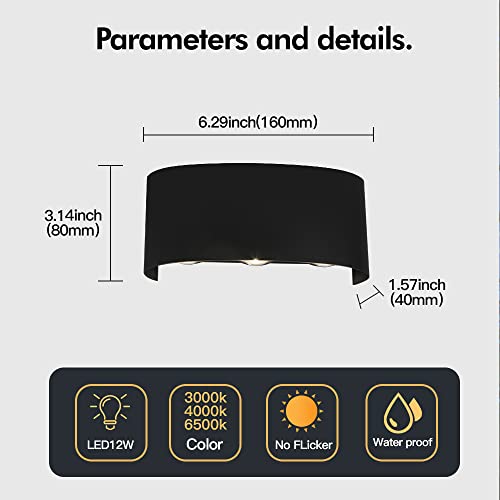 FUPE Applique da Parete Esterno/Interno 3000K Applique led da parete interno Super luminoso 1200LM lampada bagno a parete IP65 super impermeabile 12W Nero Adatto per Corridoio,Bagno(2 Pezzi)