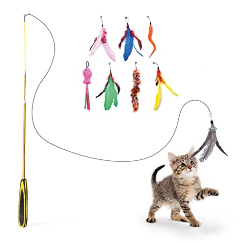 Giocattolo interattivo per gatti: il nostro set di giocattoli con piume interattive è ricco di varietà, tra cui 3 piume colorate, 1 bastone per gatti retrattile, 2 bruchi, 1 pesce rosa e 2 piume lunghe e la maggior parte delle piume ha campane. Goditi il gioco con il tuo gatto