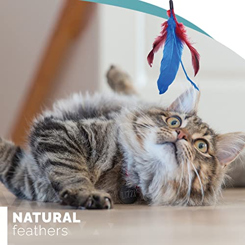 FurDreams Bacchetta gatti interattiva giocattolo per gatti | Bacchetta per gatti | Giocattolo per gatti con piume di con 8 colorate per uccelli e 2 ganci extra per, esercizio fisico, attività