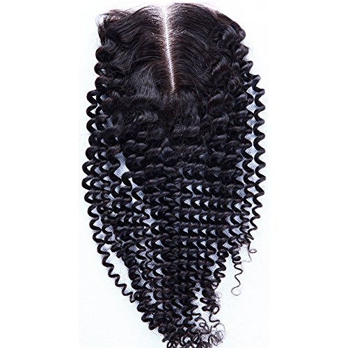 Fureya Hair Brazilian Virgin Hair Human Hair Chiusura With Baby Hair Kinky Curly Top Lace Closure Part 8-20" Naturl Black Bleached Knots