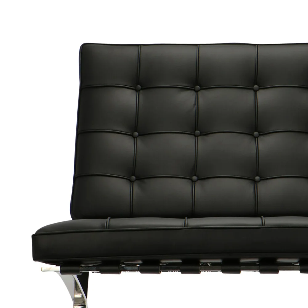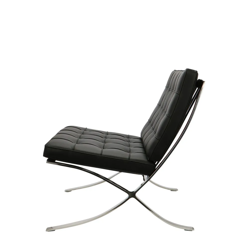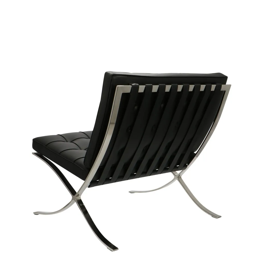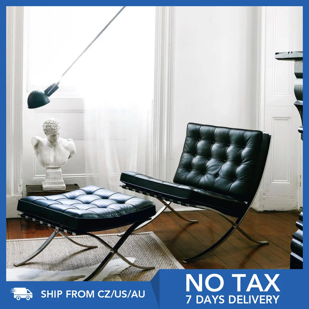 Furgle Modern Mid Century Lounge chair with Ottoman Classic Pavilion Exhibition Black Top Grain Real Leather Chair&Bench Set