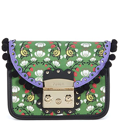 FURLA Borsa a tracolla Metropolis Serenissima verde con lumachine e pon pon
