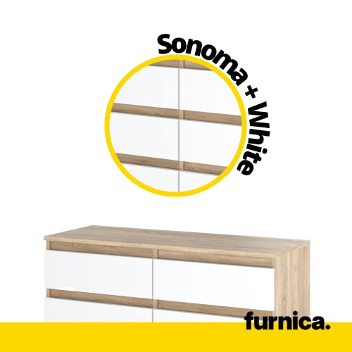 FURNICA - Nicole - Cassettiera a 5 cassetti - Credenza per camera da letto H112cm L70cm P40cm - SONOMA ROVERE/BIANCO