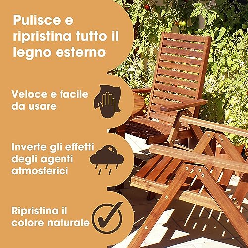 Detergente speciale per mobili da giardino: detergente testato e collaudato che pulisce rapidamente e facilmente il legno esterno tra cui teak, mobili da esterno, ponti marini e altri legni duri.