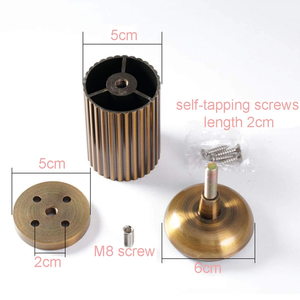 Furniture Legs Adjustable Metal Support Feet Striped Antique Copper Table and Chair Sofa Cabinet Feet Height 8~15cm 4 Pieces