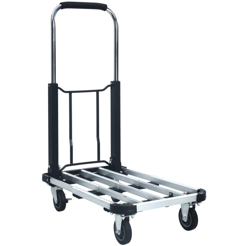 Questo carrello da trasporto pieghevole è l'attrezzatura ideale per trasportare bagagli o altre cose. Questo carrello pieghevole è realizzato in alluminio, che è resistente alla ruggine, leggero e può trasportare fino a 150 kg. Potete usarlo come carrello da giardino, carrello manuale, ecc. L'altezza della maniglia può essere regolata da 40 cm a 95 cm, rendendolo molto comodo e pratico. Inoltre, presenta un design pieghevole ed è facile da riporre quando non viene utilizzato. Questo carrello ha 4 ruote piroettanti, 2 ruote posteriori con freno, che lo rendono flessibile e stabile. È progettato con angoli di protezione anticollisione in ABS per evitare danni gravi durante il trasporto di oggetti. Colore: Argento, nero Materiale: Alluminio Dimensioni piegato: 42 x 55 x 23 cm (L x P x A) Dimensioni non piegato: 42 x 72 x (69-95) cm (L x P x A) Dimensioni della piattaforma elevabile: 30 x 27 cm (L x P) Peso massimo supportato: 150 kg Peso lordo: 8,7 kg Peso netto: 7,8 kg Include 4 ruote
