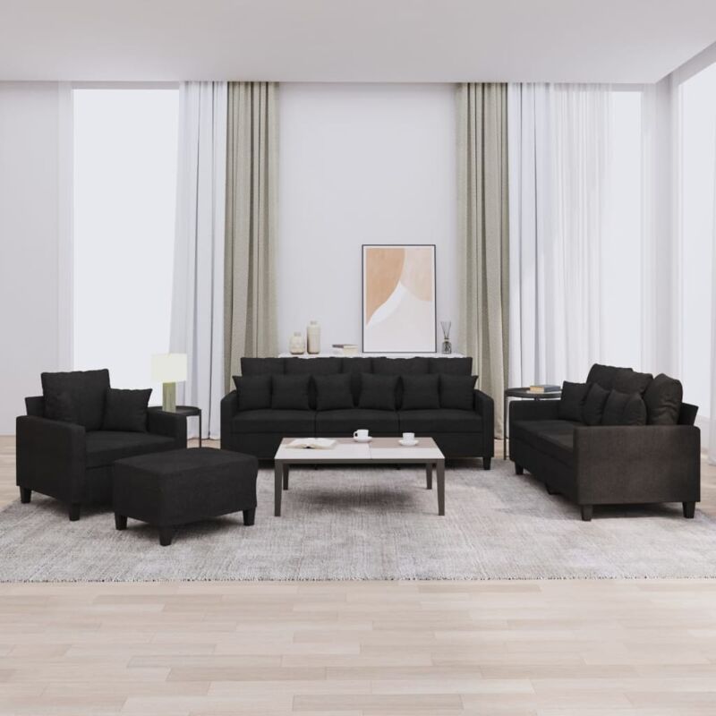 Questo set di divani è il luogo ideale per chiacchierare, leggere, guardare la TV o semplicemente rilassarvi. È destinato ad essere il punto focale della vostra casa. Tessuto resistente: Il tessuto presenta un aspetto semplice e pulito, pur rimanendo traspirante e di lunga durata. Telaio robusto e stabile: La struttura in compensato e metallo del divano garantisce robustezza e stabilità. Esperienza di seduta confortevole: Il divano è estremamente confortevole grazie all'imbottitura spessa delle sedute, dei braccioli e dei cuscini dello schienale. Pratici cuscini per il divano: Questi cuscini quadrati non solo abbelliscono il vostro arredamento, ma aggiungono anche maggiore comfort mentre siete seduti o sdraiati. Poggiapiedi versatile: Il poggiapiedi è adatto per far riposare le vostre gambe mentre vi rilassate sul divano, o per avere una seduta in più nel vostro ambiente. Inoltre, il design semplice e le dimensioni compatte lo rendono ideale per la maggior parte degli ambienti