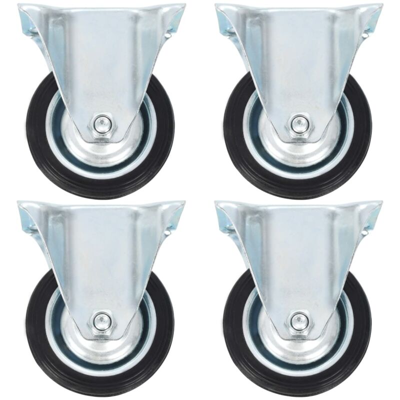 Questo set, composto da 4 rotelle fisse, costituisce l'accessorio perfetto per attrezzature e mobili di piccole dimensioni come banchi da lavoro, carrelli, tavolini da caffè, piantane, scaffali, carrelli della spesa, etc. Le ruote sono realizzate in gomma, un materiale che si distingue per una buona resistenza agli urti e alle vibrazioni e che consente alle ruote di girare in modo fluido e silenzioso. La loro superficie morbida, inoltre, protegge efficacemente il pavimento dai graffi. La struttura in ferro zincato è altamente resistente alla ruggine e garantisce maggiore robustezza e durata delle ruote. Ogni ruota è dotata di una capacità di carico massima di 50 kg. La consegna include 4 rotelle fisse. Colore: Nero Materiale: Gomma e ferro zincato Diametro della rotella: 75 mm Dimensioni piastra: 81 x 67 mm (L x P) Capacità di carico massima: 50 kg (singola ruota) La consegna include 4 rotelle fisse